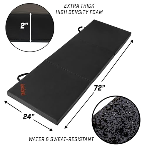GoSports 2 inch Thick 6 ft x 2 ft Tri-Fold Exercise Fitness Mat – Great For Workouts, Yoga, Stretching