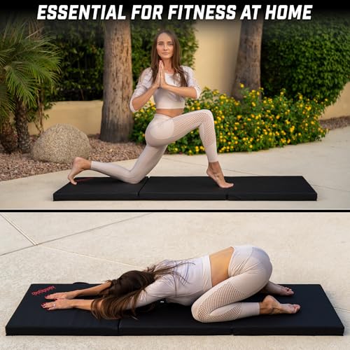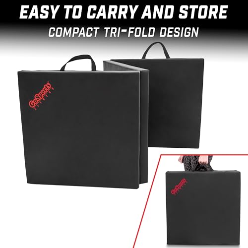 GoSports Fitness 6 ft x 2 ft Tri-Fold Mat is without equal fitness training aid for any exercise routine. Very important for making home gym workouts comfortable and making it easy to exercise anytime and anywhere especially with a busy schedule The mat is huge at 6 ft x 2 ft which makes it extremely versatile for countless fitness routines including yoga, pilates, MMA, stretching exercises, and more. The tri-fold design means the mat collapses into 3 panels for instant setup if you find yourself able to wreck a sweat and instant breakdown if you find yourself done Folded dimensions are 23.5 x 23.5 x 6.5 inches, ultra compact for storage when now not in use. The mat also features convenient carry handles for portability making commute to and from workouts a breeze. Now get pumped to your next workout with GoSports FItness 6 ft x 2 ft Mat.