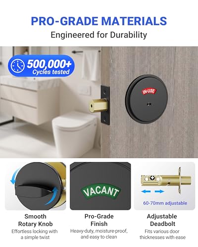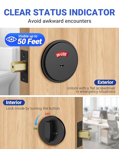【Clear Occupancy Indicator & Enhanced Privacy】This commercial deadbolt features highly visible red (IN USE) and green (VACANT) indicators that eliminate guesswork and awkward encounters in public restrooms, offices, spas, and more. Inside, lock/unlock with a convenient thumb turn; outside, use the flat pin emergency key for quick access during emergencies—perfect for spaces requiring both privacy and safety compliance.