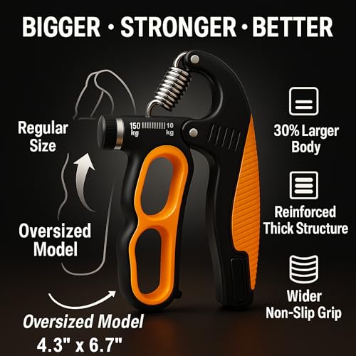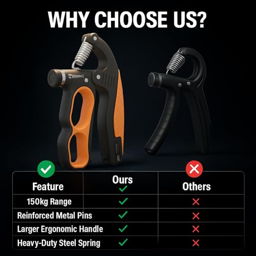 【 Heavy-Duty Resistance】 Upgraded steel spring delivers super-wide resistance range (22–330 lbs /10 -150kg ), perfect for beginners, athletes, rock climbers, musicians, and fitness users who want hand exercisers for strength, stronger hands, wrists, and forearms.