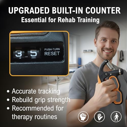 【 Built-In Repetition Counter 】Smart mechanical counter of this hand grippers tracks your reps automatically—no batteries needed. Helps you stay consistent with training, especially for physical therapy, rehab routines, and progressive workouts.