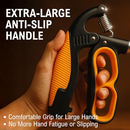 【 Extra-Large Non-Slip Ergonomic Handle 】Oversized TPE rubber grip of this finger strengthener fits men and women comfortably. Anti-slip texture ensures a secure hold, reducing hand fatigue and allowing long training sessions at home, in the office, or at the gym.