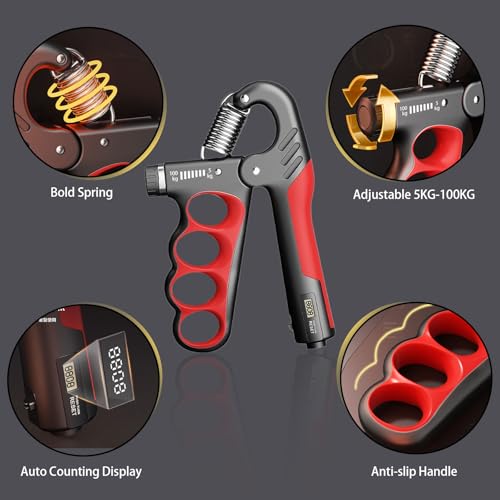 Grip Strength Trainer, 5-100KG (11-220 LB) Adjustable Resistance Forearm Hand Gripper Strengthener with Counter, Hand Wrist Exercise Workout Equipment for Home/Office Gym