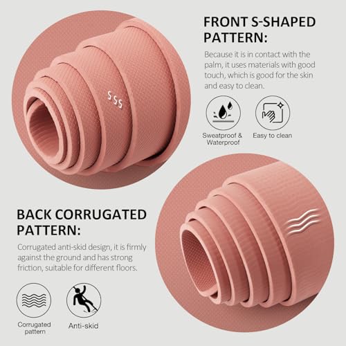 ANTI SKID AND ANTI TEAR: This workout mat has double-sided non-slip surfaces, more hard-wearing than regular yoga mats and resistant to tearing and deformation. Special textured surface prevents your hands and feet from sliding when you sweat on it without sacrificing comfort. Wavy undersides make excellent traction on the floor.