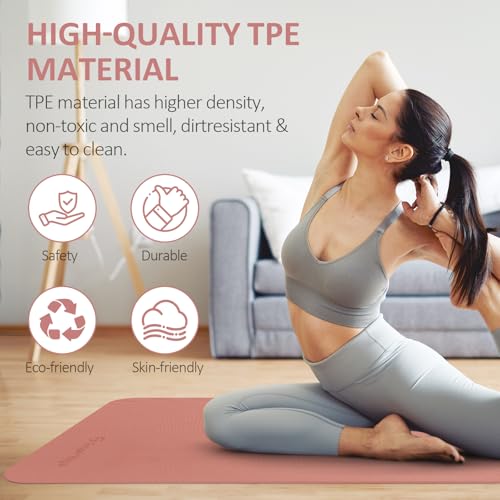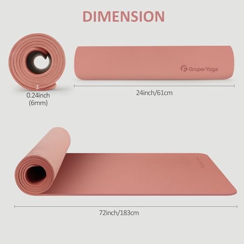 ECO FRIENDLY TPE MATERIAL: The upgraded Gruper yoga mat is made with premium friendly TPE material, non-toxic, odorless and harmless. It costs more to make, but it is more soft, skin-friendly and light weight than traditional PVC and EVA yoga mats. The exercise mats are suitable for yoga, pilates and floor exercises.