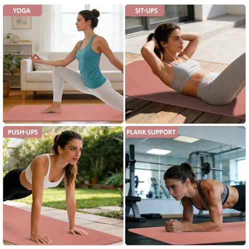 ANTI SKID AND ANTI TEAR: This workout mat has double-sided non-slip surfaces, more hard-wearing than regular yoga mats and resistant to ripping and deformation. Special textured surface prevents your hands and feet from sliding whilst you sweat on it without sacrificing comfort. Wavy undersides make very good traction at the floor.