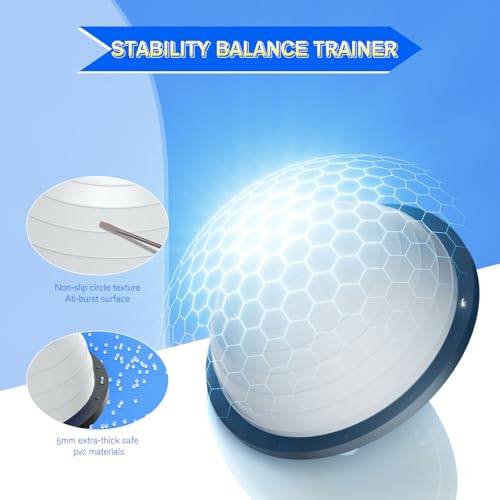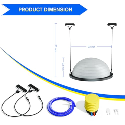 Half Balance Ball Trainer – 23 Inch Half Exercise Ball for Workout, Physical Therapy, Yoga, Home Gym, Core Strength, Stability, Fitness, Balance Training Equipment with Resistance Bands, Foot Pump