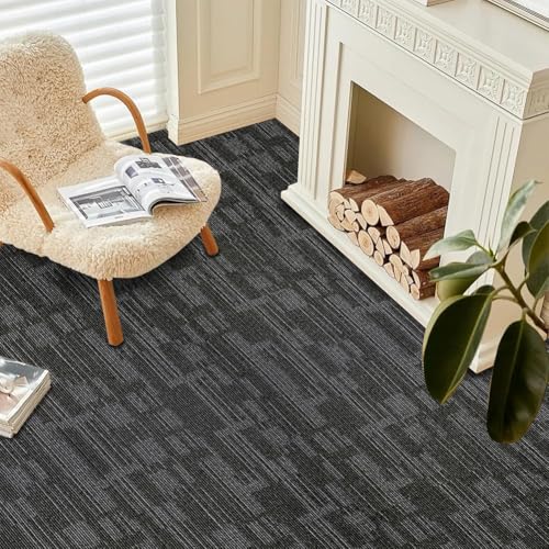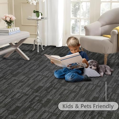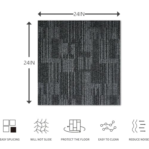 Heavy Duty Commercial Carpet Tiles 24″ x 24″, 18 Pcs/72 sq ft (FlexLok tabs Included),Non-Slip Soft Square Carpet Floor Tile for Office Bedroom Living Room Kitchen Garage Gym (Grey)