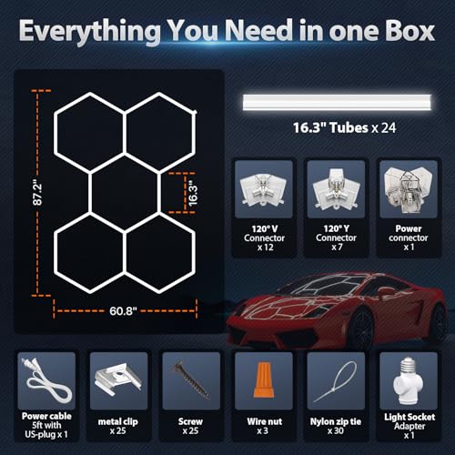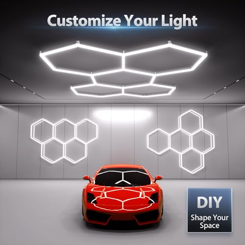 DIY & QUICK INSTALLATION – Hex led garage lights are made of ultra-light materials and are designed to be installed quickly by one person. Quick-plug power connection method, automatic locking without manual connection, plug and play. Connect multiple tubes to expand your setup and create your ideal LED hexagon lights layout for garages, studios, or showrooms