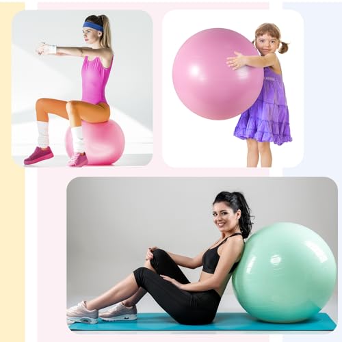 Different Sizes: our workout balls for exercise have 3 different sizes, the pink one is about 21.7 inches/ 55 cm, the green one is about 25.6 inches/ 65 cm, and the blue one is about 29.5 inches/ 75 cm; They can easily cope with the needs of your different periods and stages