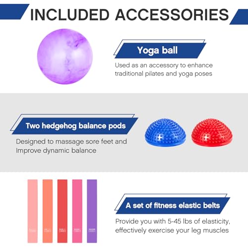 Honoson Half Ball Trainer Yoga Ball with Resistant Band Foot Pump Set, Half Exercise with Fitness Elastic Belt Hedgehog Balance Pods for Core Stability Full Body Workout Gym
