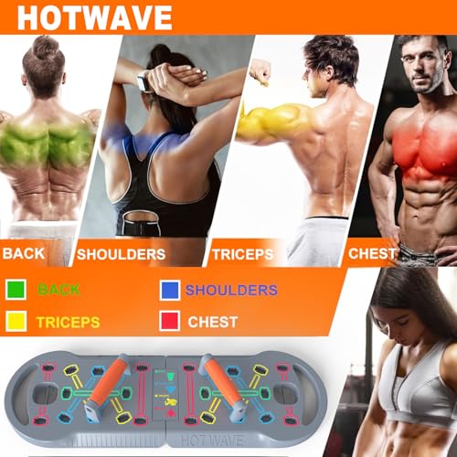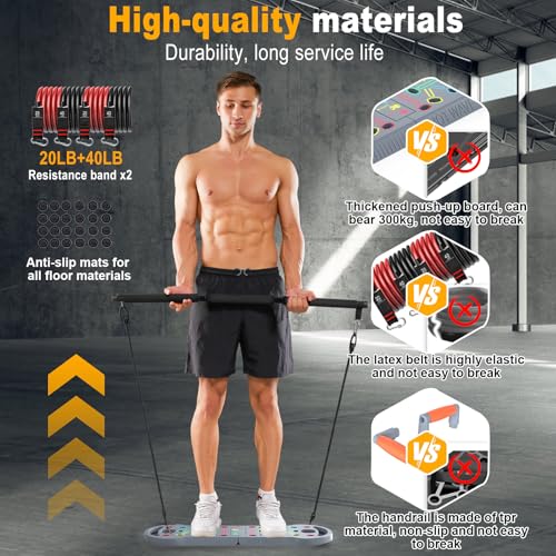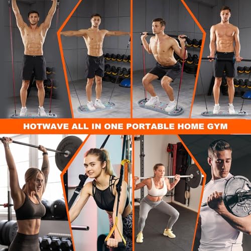 HOTWAVE Portable Exercise Equipment with 16 Gym Accessories,20 in 1 Push Up Board Fitness,Resistance Bands with Ab Roller Wheel,at Home Workout for Men