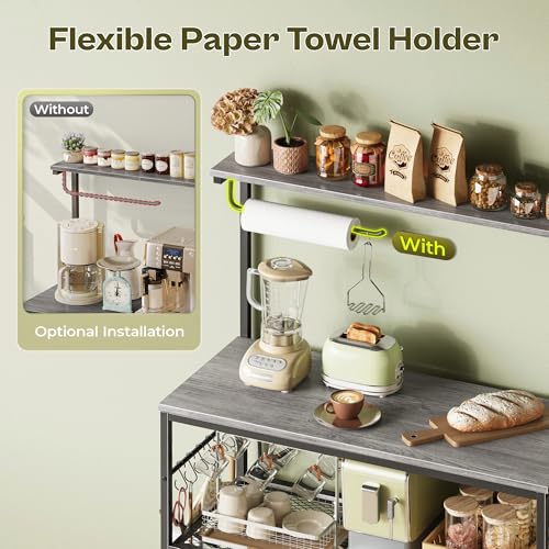 【Paper Towel Holder & Deep Desktop】Enjoy the convenience of a paper towel hook right where you wish to have it. The wide top shelf provides a stable surface for your largest kitchen gadgets, helping you free up valuable countertop space and keep your kitchen clutter-free