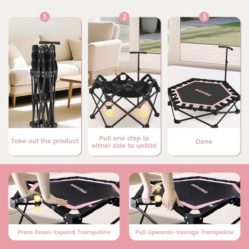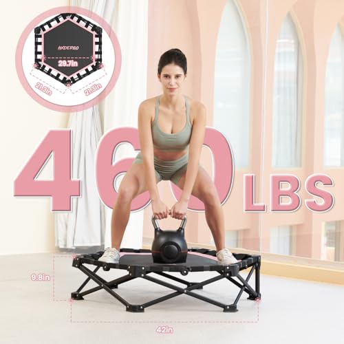 HXD-ERGO 42” Foldable Mini Trampoline, Rebounder Trampoline with Adjustable Foam Handle, Fitness Trampoline for Indoor, Outdoor, Home Gym,Max Load 460lbs