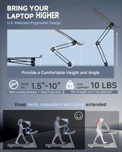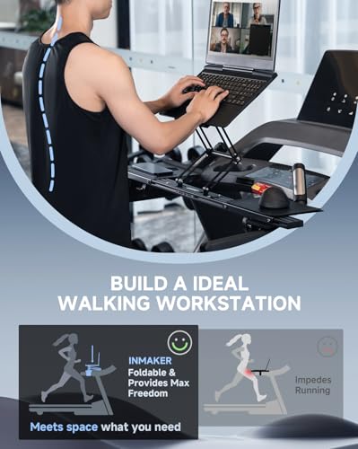 Max Freedom for Walking Workstation: Adjustale height and angle for different working postures. INMAKER treadmill laptop holder keeps neck, shoulders and spine extended while on a online conference, mail writing or video watching etc.