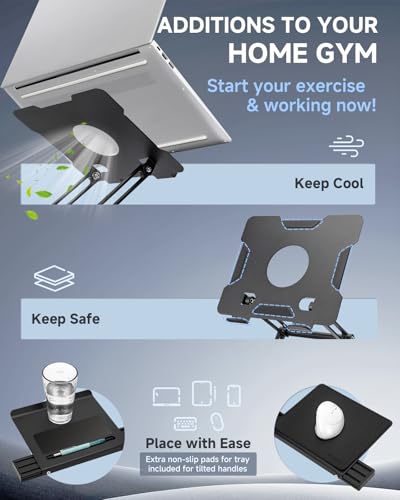 INMAKER Treadmill Desk Attachment, Universal Treadmill Laptop Holder Adjustble Height Width Commercial Version, Aluminum Laptop Stand for Treadmill with Tray