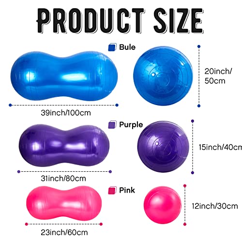 Jexine Peanut Ball for Kids Therapy – 3-Piece Anti-Burst Set, Yoga Balance Exercise Ball for Pregnancy & Home Gym, Includes 1 Pump & 3 Size Options