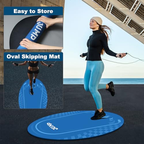 Shock Absorbing Skipping Rope Mat: Made of 5mm thick high-density material, our skipping rope mat provides excellent cushioning and noise reduction whether indoors or outdoors, relieving your knees and joints from impact