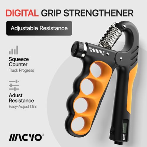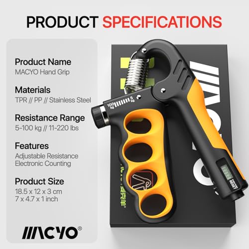MACYO Grip Strength Trainer with Wider Handles – Adjustable Hand Grip Strengthener 11-220Lbs(5-100KG) for Large Hands, Automatic Counter & Ergonomic Design, Comfortable Forearm Workout for Athletes, Injury Recovery