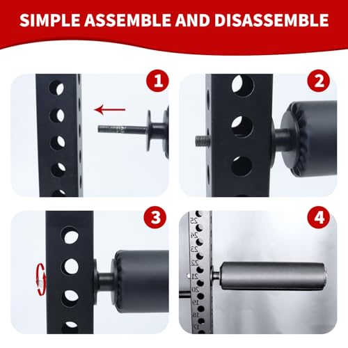 Easy to lnstall:Single leg squat roller is easy to install, simply insert one end into the squat rack hole and tighten the nut. The single leg squat roller has 5/8″(16mm),0.7 inch (18 mm) or 1 inch (26 mm) hole diameter, of course, the nuts in the product parts are M14,M16 and M24 and the nuts are 16*110 and 24*100 respectively. Please measure the hole diameter of the power rack before purchase to make sure perfect compatibility.