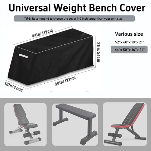 Designed to Fit Most Weight Benches Securely: Size: 44” L x 50” W x 21” H. Specially designed as a cover for weight bench, suitable for most flat, adjustable, sit-up, and bench press models on the market — including Bowflex 5.1S Adjustable Bench, Marcy SB-315 Utility Weight Bench, Flybird Adjustable Workout Bench, CAP Barbell Flat Utility Bench, and more. Three-dimensional tailoring ensures a snug fit that stays in place without shifting. Please measure your bench before purchasing