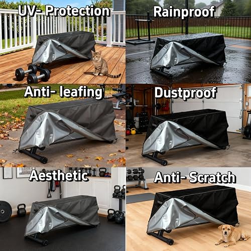 All-Weather Protection for Garage & Home Gyms: This weight bench cover waterproof outdoor protects your fitness bench from rain, snow, dust, sweat, UV rays, and pet scratches—ideal for garage gyms, patios, basements, and indoor workout spaces. Simply wipe clean with a damp cloth after use. The grey side handle allows for quick and easy covering and removal