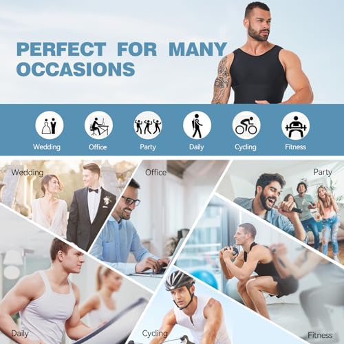 Mens Compression Shirt Slimming Body Shaper Workout Tank Tops Tummy Control, Hide Gynecomastia Undershirts