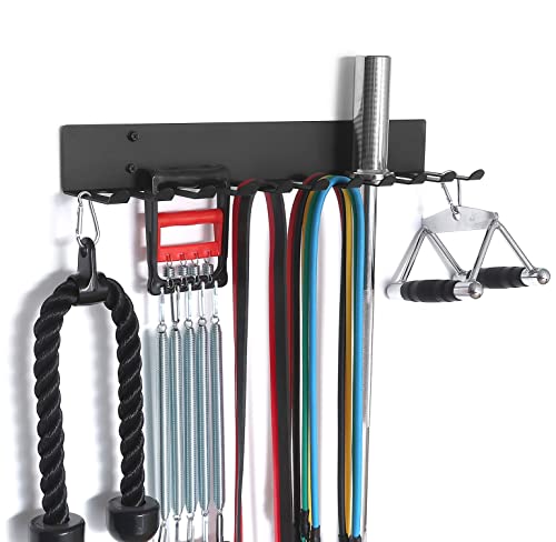 Heavy-duty- The resistance band hanger is made of heavy-duty steel, the surface is covered with black anti-rust powder coating to make it strong and beautiful. It can be used to store fitness equipment in home gyms, garages and commercial gyms. It is recommended to use a specific storage rack for Olympic Barbells of 6ft and above