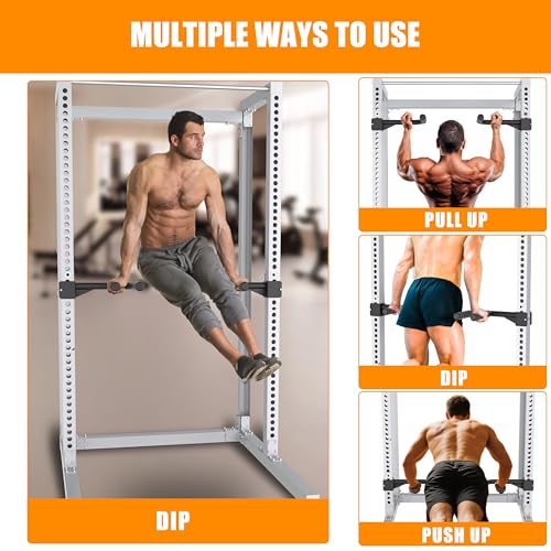 Muti-Grip Dip Bars Attachment for Power Cage with 5/8″ or 1″ Hole, Non-Slip Wide & Narrow Grip Dips Double Handles, 600 lbs Capacity, Squat Rack Attachment for Dips, Inverted Rows, Push-Ups