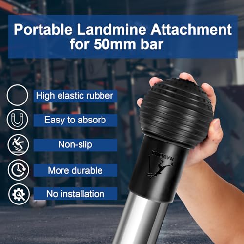 【Premium Landmine for Bar】- Navona landmine attachment is made of sturdy natural Rubber, Durable enough to resist the weight of a bar, the natural rubber landmine attachment boasts an impressive maximum load capacity of up to 500 pounds, enabling you to engage in a wide range of full-body strength training exercises.