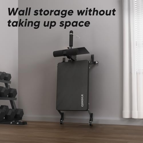Space-Saving and Easy to Move: The nordic bench is equipped with transport wheels, so you can move it as needed. Also, you can fold it up and stand it against the wall. It’s a good space saver in your home gym