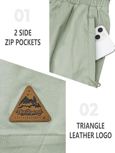 NORTHYARD Mens Casual Shorts-Cotton 9″ Golf Hiking Drawstring Elastic Waist Work Shorts with Zipper Pockets