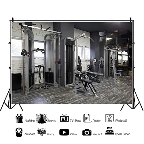 OERJU 6x4ft Grey Gym Backdrop Indoor Fitness Equipment Muscle Training Physical Exercise Sports Theme Photography Background Modern Health Club Decor Boys Man Portrait Photo Vinyl Studio Props