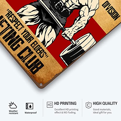 Old Man Gym Tin Sign for Home Gym Decor – Masters Division Respect Your Elders Fitness Metal Sign – Weightlifting Poster Art for Men 8×12 Inch