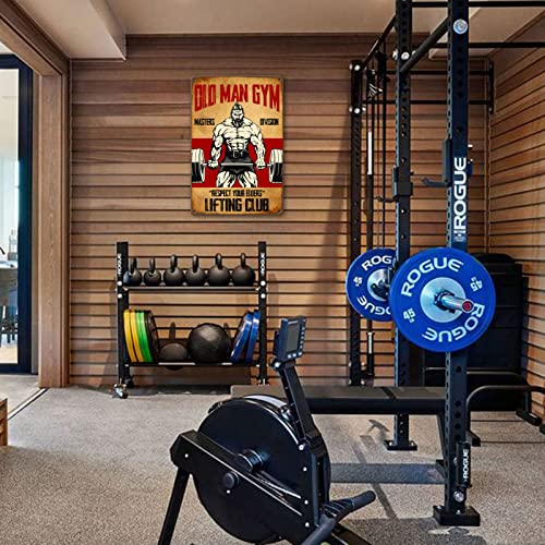 Old Man Gym Tin Sign Higher Quality: This vintage weightlifting signs for home gym is made of industrial grade metal tin sheet, which is stronger and more durable. The sign for garage man cave features bright colors which are not easy to fade away, will serve for long period.