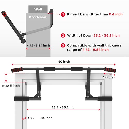 【Thickened Steel】This product is made of thickened steel and has foam grips for different exercises. It can support up to 440 pounds to ensure your safety. The full-coverage foam protector prevents damage to your door frame. The pull-up bar will not leave any marks on your door frame.
