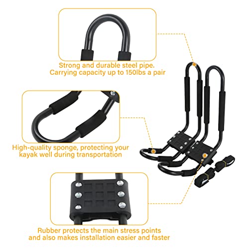 Durability & Strong Support: PIRIPARA Kayak roof rack are made of sturdy and high quality alloy steel. Come with 2 Pairs(4pcs) kayak rack, can hold 2 kayaks. Total load capcity up to 150 lbs.