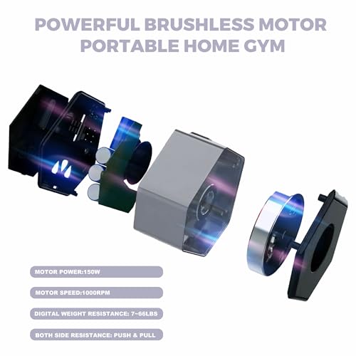 【7-132 lbs Custom Resistance】Features a high-performance brushless motor with speeds up to 1000 RPM, offering precise resistance adjustment from 7-66 lbs (3-30kg) via current control. Dual resistance sets reach 7-132 lbs (3-60kg) (tension gauge tested). Suitable for both beginners and advanced users, it meets diverse training needs and enhances workout results.