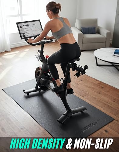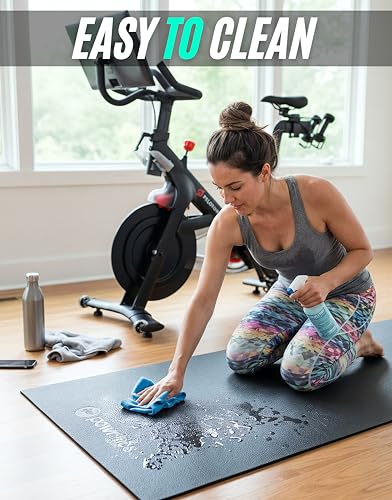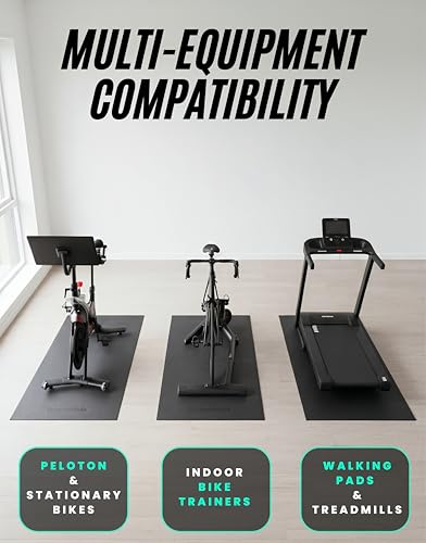 Powr Labs Bike Mat Compatible with Peloton, Treadmill, Exercise Equipment, Elliptical, Walking Pad, Indoor Bike Trainers, Home Gym Workout – Protects Hardwood Floors and Carpet