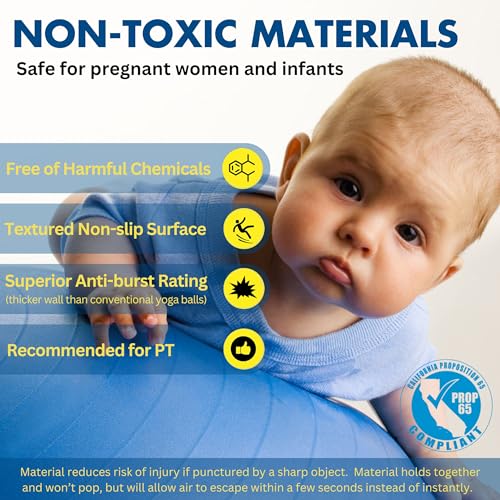 ANTI BURST AND SLIP RESISTANT: A work out ball with sturdy PVC to withstand the most punishing workouts. This heavy duty stability ball is rated beyond 330 lbs of weight; safe as a pregnancy ball or birthing ball.