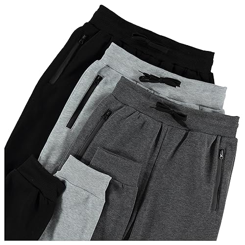 PURE CHAMP 3Pk Boys Sweatpants Fleece Athletic Workout Kids Clothes Boys Joggers with Zipper Pocket and Drawstring Size 4-20