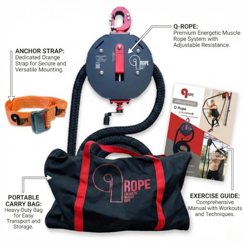 Qrope Endless Rope Trainer Machine – Portable Rope Pull Pulley System – Home Gym Workout Equipment for Strength Training – Infinity Rope for Upper Body and Forearms
