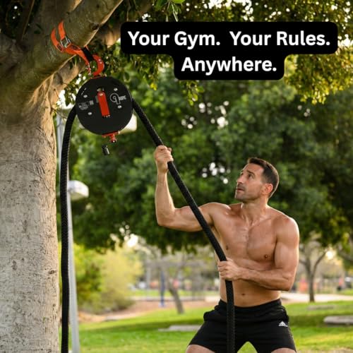 PORTABLE GYM SOLUTION: Train anywhere with this compact rope pull machine. The included strap anchors to fences, posts, trees, or indoor fixtures for easy setup. Designed for indoor and outdoor use, this portable fitness rope withstands various conditions.