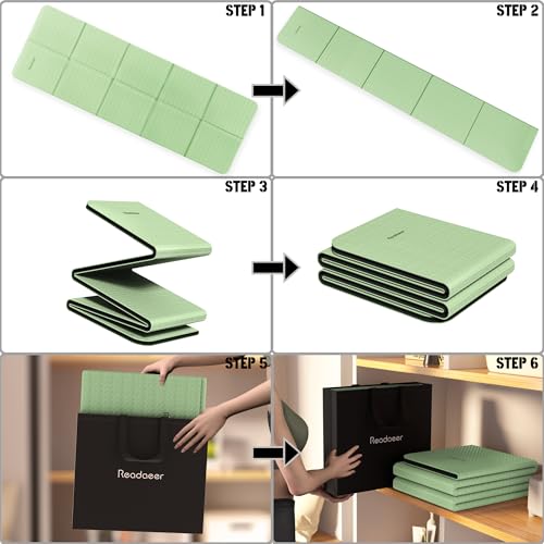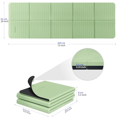 Readaeer Foldable Yoga Mat for Travel Folding Yoga Mat 6mm Thick with Carrying Bag, Non-Slip TPE Exercise Pilates Mat for 72″ L x 24″ W x 0.24 Inch