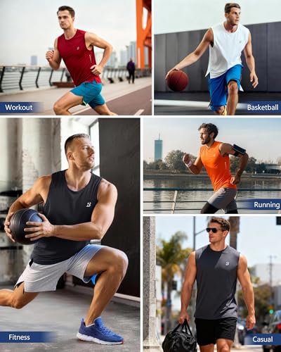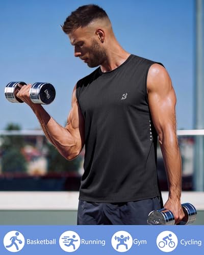 Roadbox Men’s Athletic Sleeveless Shirts, Quick Dry Workout Tank Top, Lightweight Muscle Shirts for Sports Gym Running Summer