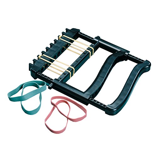 Rolyan Ergonomic Hand Exerciser with Plastic Handle, Adjustable Grip Strength Trainer with 4 Color‑Coded Rubber Bands, Finger & Hand Exerciser for Therapy, Rehab, Strength Training, Black