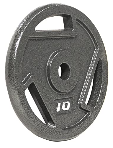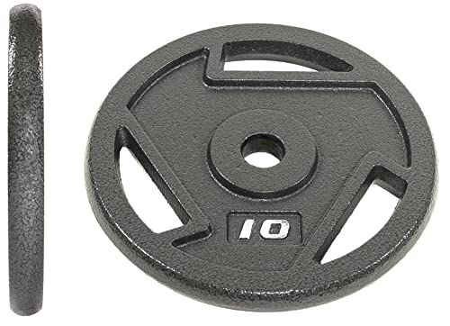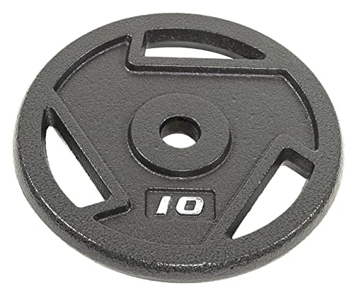 Made of solid cast iron with a 1-inch center hole fits any Olympic bar with diameter 1” or less; Can be used with 1” dumbbell bars too