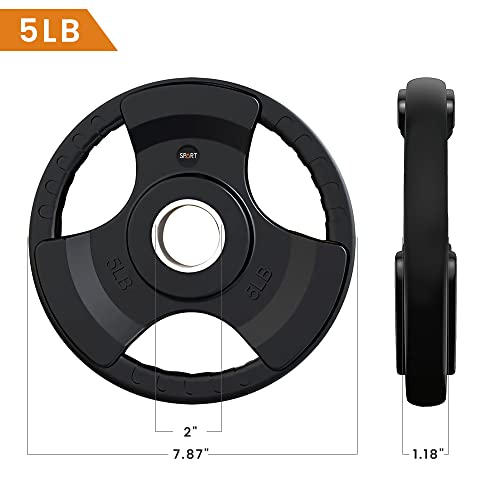 SPART Weight Plate 2-Inch Rubber Coated Olympic Grip Plate for Barbell,Solid Cast Iron Weight Plates in Pairs or Single for Strength Training,Weightlifting,Crossfit,Home Gym(5LB/10LB/25LB/35LB/45LB)
