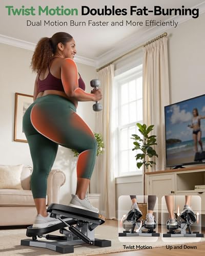 【2025 Updated Stair Stepper】Compared to the traditional cable-pully mini stepper, we used 2mm high quality steel and precision bearings.After thousands of tests,we make sure our step machine are safe and durable to support 600lbs+.[Sportsroyals Twist Stepper ]Twist action provide a persistent high cardio, it helps you tone thighs and buttocks, while achieving a challenging cardiovascular workout.Stepper with resistance bands work arms, chest, back, and shoulders for total body workout.Perfect for weight-loss, body-shape,and daily exercise.[Why Choose Sportsroyals Stepper? ]Sportsroyals Pro-Grade Stepper, Compared to the traditional cable-pully mini stepper exercise machine we used 2mm high quality steel and V-shaped precision bearings. Wider Base with 4PCS anti-pad, ensure safety and stability during exercise.Oversized Pedal that fits the whole family’s feet. Be a perfect steppers for exercise at home machine.[90MIN Continuous Resistance]Built with a European standard hydraulic cylinder strengthen, this twist stepper will maintain high resistance in each exercise cycle to help you burn fat quickly. After 100k cycle hydraulic test, the resistance can last for up to 90 minutes,and excellent gas sealing will no oil leakage.[Build with Gym Quality]Sportsroyals stair stepper are made of commercial steel square frame with a thickness of 2mm. Past thousands of weight tests, we make sure our machines are safe to support a dynamic load of 330lb,static load-bearing of 660lb.Solid and durable for years of workout.[Enjoy Your Workout, Super Quietly] With silent silicone cushioning pad under the Sportsroyals stepper machine, no squeaking sound and quieter than whisper.Don’t worry about waking up the child sleeping at home & disturbing your neighbors.[100% assembled] Sportsroyals twist stepper is ready to use out of the box, no extra installation, very suitable for home gym. Size:18.11″L*15.55″W*8.86″H.The portable stair stepper can easily store it in the corner when you finish your workout.[Exercise easily, anytime and anywhere] Walk while watching TV, exercise during breaks at work, do morning exercises in the bedroom, and workout in the park and courtyard.Best choice stair stepper for home.