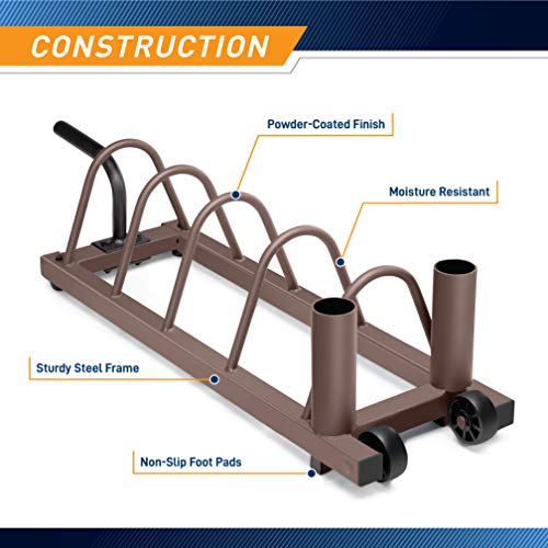 Steelbody Horizontal Plate and Olympic Bar Rack Organizer with Steel Frame and Transport Wheels STB-0130, brown 41”L x 11”W x 9.5”H